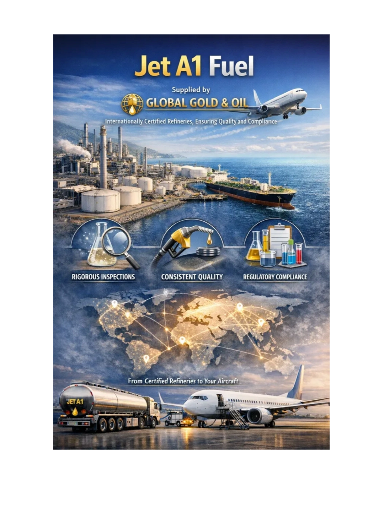 GLOBAL GOLD & OIL under strict compliance and safety standards, ensuring that every Jet A1 supply meets technical, legal, and environmental requirements.